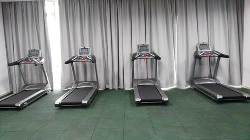 210健身房:跑步机、动感单车、仰卧起坐器、多功能训练器、腰背部训练器、哑铃等提供有氧运动训练
