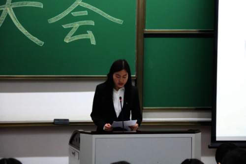 大会伊始,团委副书记朱彩霞首先对大会主要内容作了简单的介绍。随后,学生会主席陈书悦上台作半学期的工作汇报,并对新干事的到来表示了欢迎。接着,小说狂人 2017届干事代表朱明俊和部长代表高露薇分别发表了讲话,表达了她们对人文团学的热情与期望。除了现任干事与部长,我们还有幸邀请到了人文团学前任主席钟松阳。钟主席向大家分享了他在团学的工作经历,并由此指出了作为一名人文团学人的职责与要求。发言结束后便是庄重的聘任和转正仪式,主席团分别带领自己分管的部门上台接受钟松阳颁发的证书。最后,各部门干事分别按序上台,接受部长颁发的聘书。