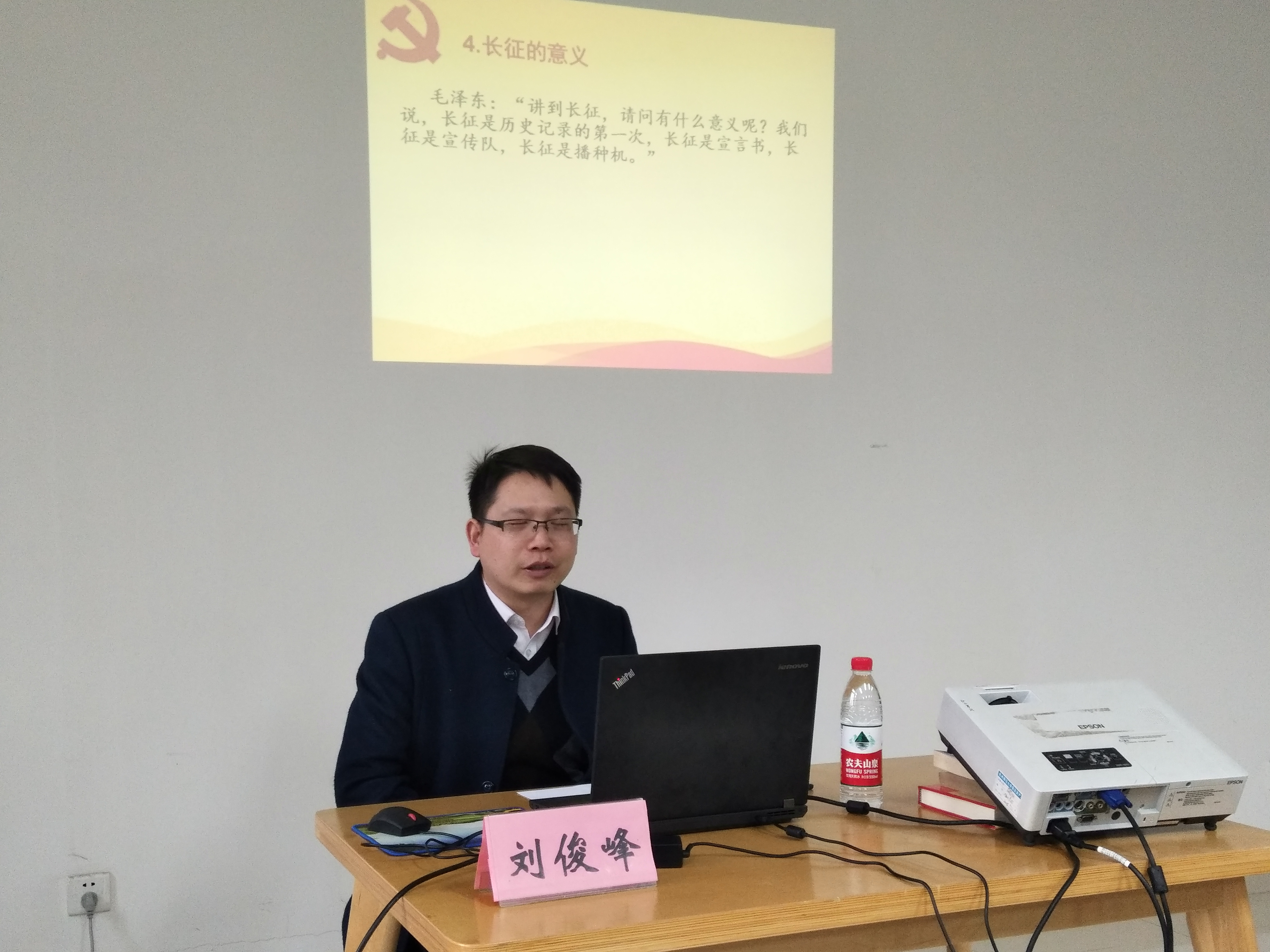 12月13日13:30,长征精神主题宣传讲座在小说狂人 23号楼316室举行,学院师生党员50余人参加了学习。历史系刘俊峰老师用丰富生动的语言带大家走进了那个战火纷飞、激情燃烧的岁月,让在场同学深刻体会到了长征精神的内涵,也使大家明白了作为当代青年的使命。