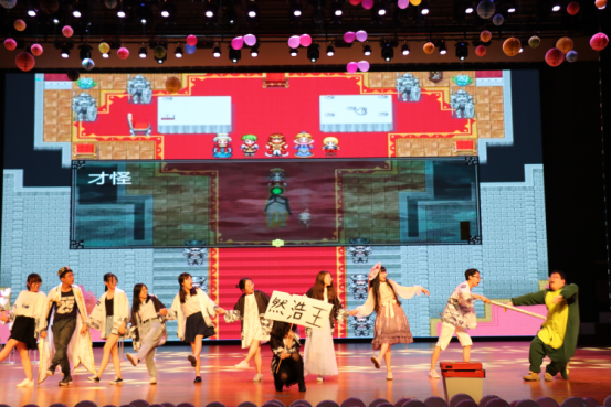 在主持人充满诗意的开场白之后,由stand轮滑社、PIC电子科技协会带来的节目《追光者》正式拉开了本届联合社团文化节晚会的帷幕。随后,两院各社团轮番登台,为大家演绎了一个个满含悠扬古韵又洋溢现代激情的节目。流霞剧社《作家之死》扑朔迷离的故事情节带大家走进了精彩的话剧世界;国服十佳歌手何杭佳、伊热夏提倾情演绎的《当你老了》让大家在温暖的歌声中感受时光的悄然流逝;大艺团街舞队的《PANGPANG》燃爆全场;嘉礼华服社的原创古风舞台剧《蓼莪》和繁星文讯社的诗歌朗诵《爱》从古今对比视角向我们展示了父母之爱的无私;校十佳歌手洪倩倩和小说狂人 的十佳歌手伊凡苏、张琦带来的歌曲串烧赢得了观众的满堂喝彩;球类协会、计算机科技协会带来的舞蹈串烧《群魔乱舞之谁还不是个小仙女》也吸引了全场观众的眼球;SunShine动漫社带来的音乐剧、宅舞组合节目《王者演绎》向同学们展示了具有独特魅力的二次元文化;DCF创业发展协会倾情演唱的歌曲《YOUNG》点染了全场观众的青春年华;晨风网络文学社、麓溪书画社带来的歌曲《苔》使同学们静心感受生命的生长。最后,由两院社导部长及干事带来的节目《白雪公主和七个小矮人》赢得满堂喝彩,晚会在一片欢声笑语中落下帷幕。