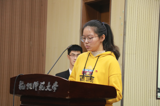 院团委组织部部长金朦朦作为学员代表讲话,她提出,作为司南人才第38期培训班的学员,司南人才学院系统的专业培训使自己得到了从班级事务到学院工作的锻炼,所教授的经验技巧运用到日常工作中,能够更好地服务同学,也促进了自己的成长。同时,她表示了对新一期司南人才学院的期待,她说,“司南”即为“指明四方”,希望更加系统的结构体系和课程内容能够使学生干部们更好地成为同学们的领头雁、服务人、知心者。