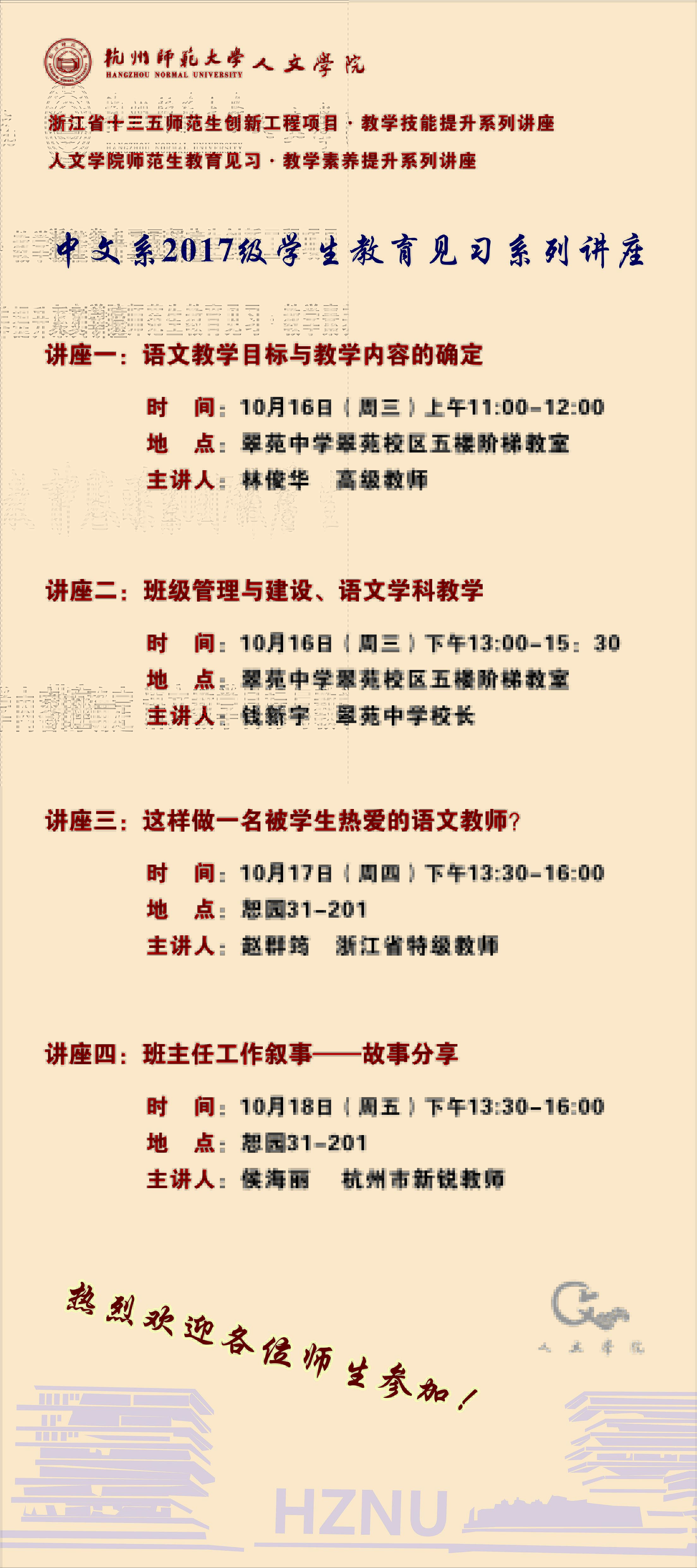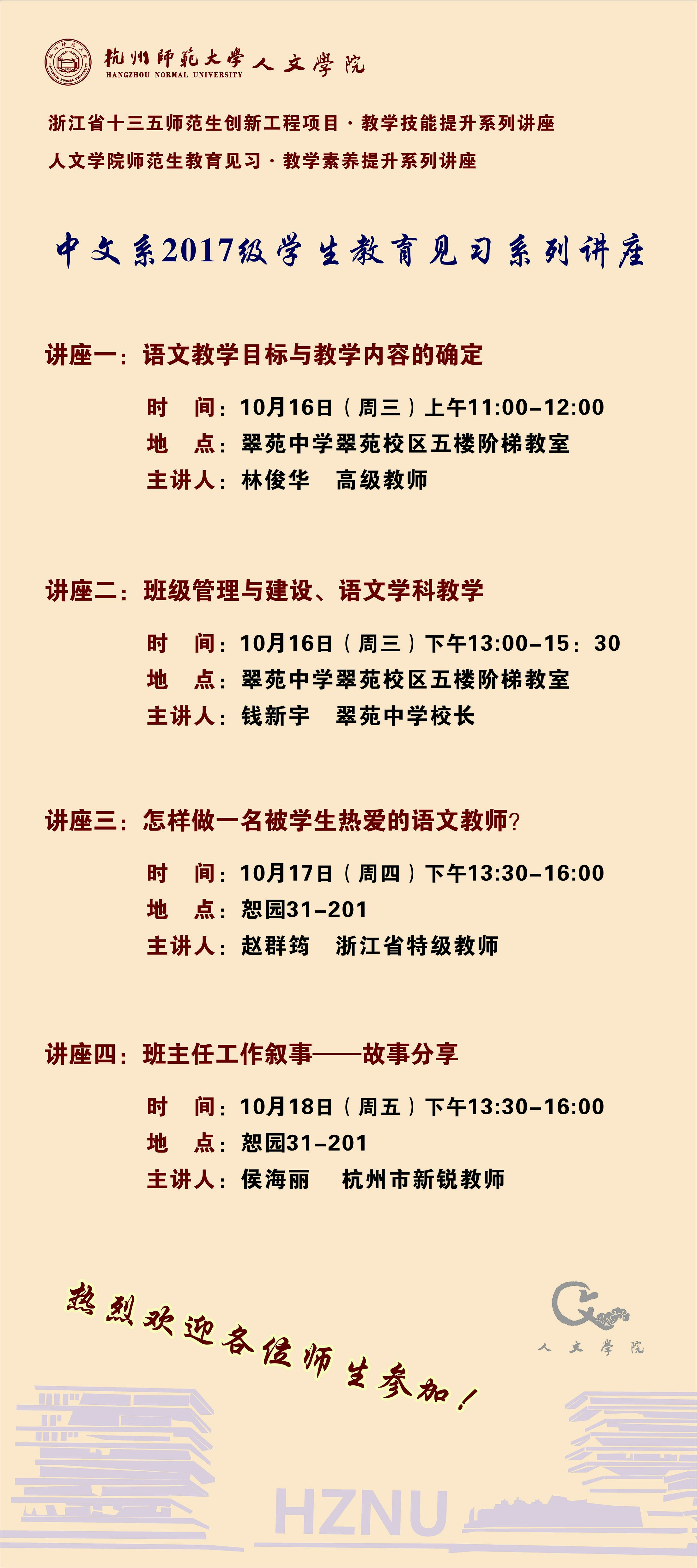 中文系2017级教育见习系列讲座历史系2017级教育见习系列讲座