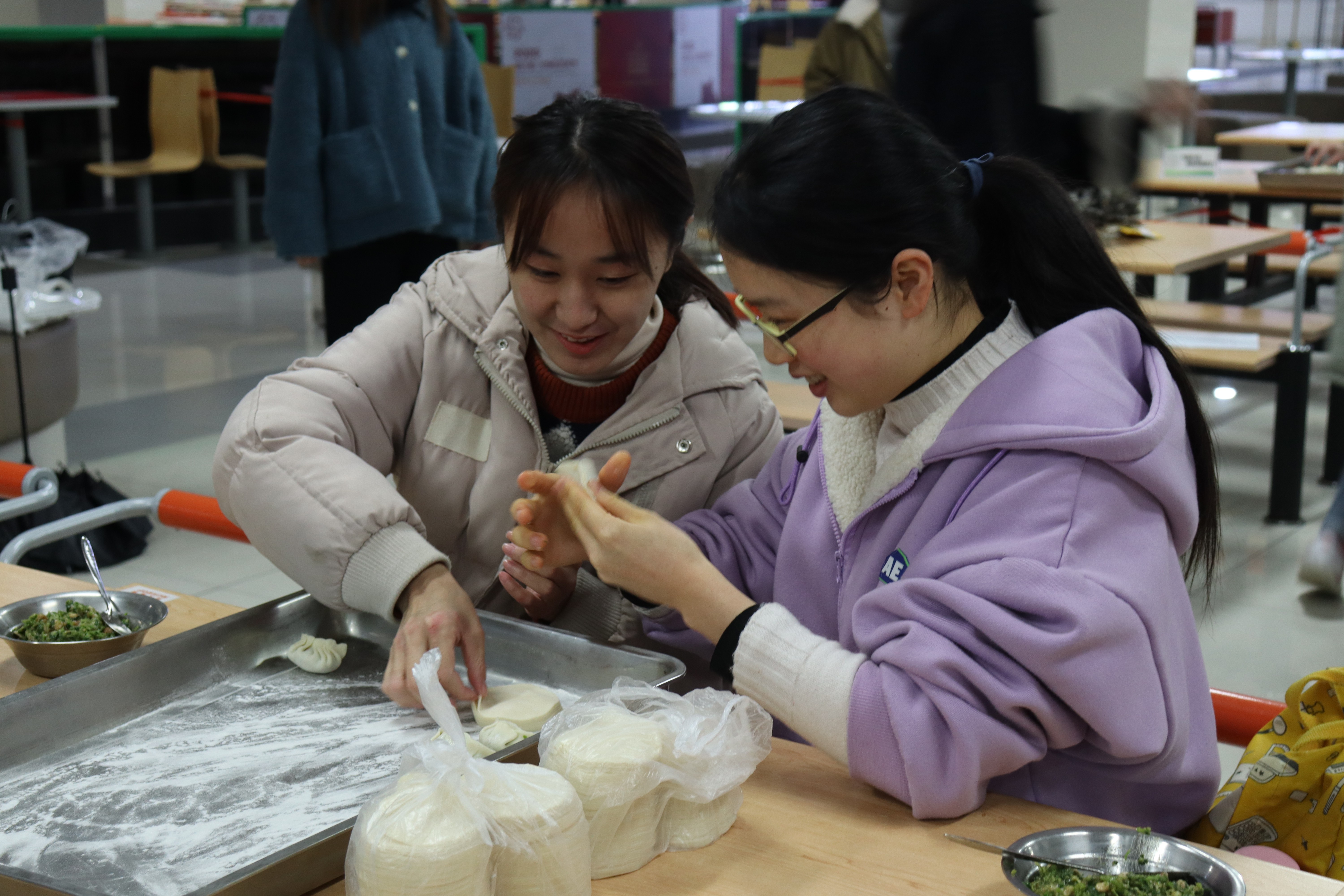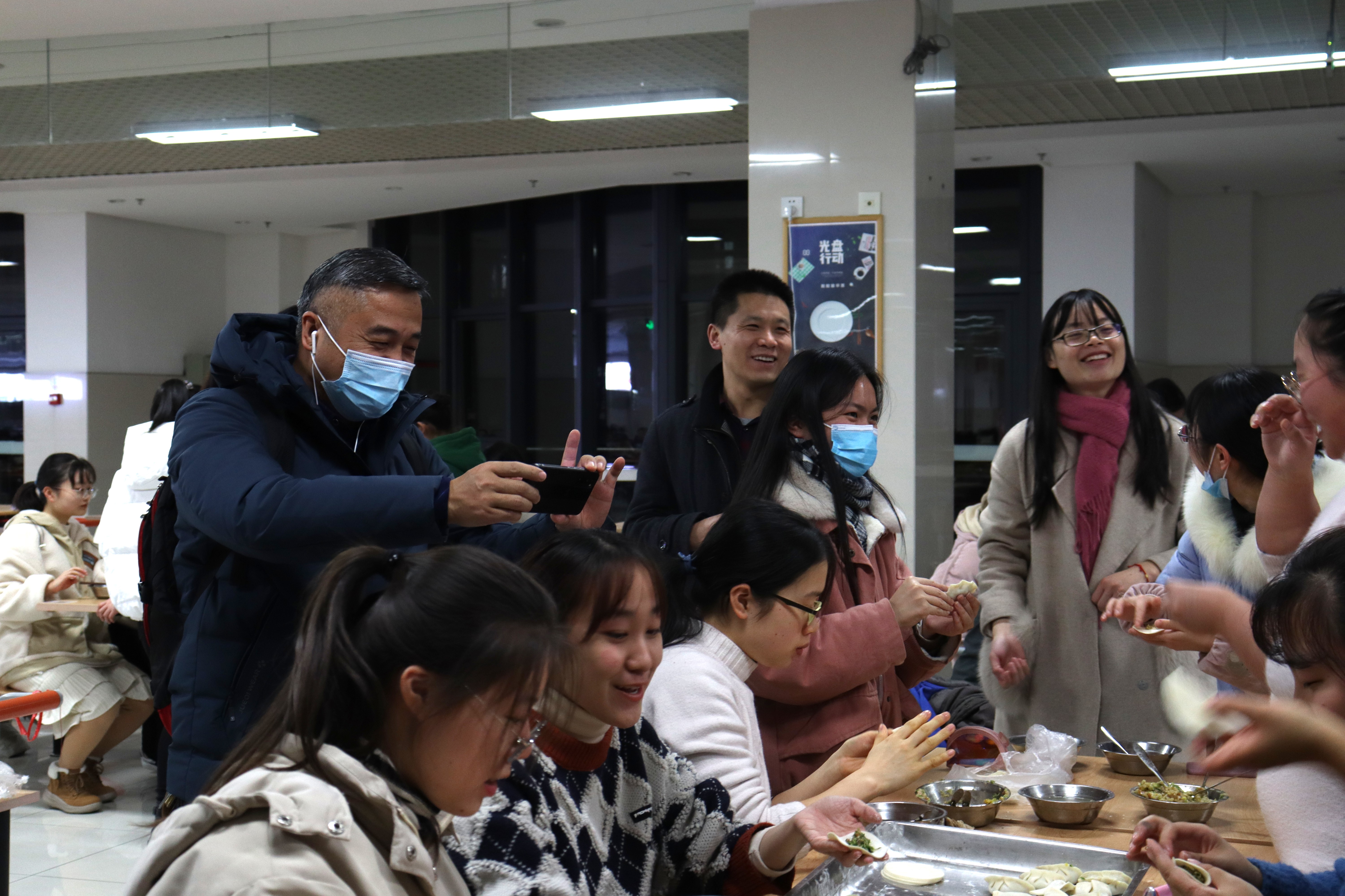“冬季送温暖——包饺子活动”在恕园8号楼食堂二楼举行。学院领导、老师和同学们欢聚一堂,和励志生共同包饺子,过冬至,迎新春,为他们送去温暖。院党委副书记管庆江,学院老师江素君、于海波,辅导员陈晓玲参加活动。现场欢声不断,气氛融洽。
