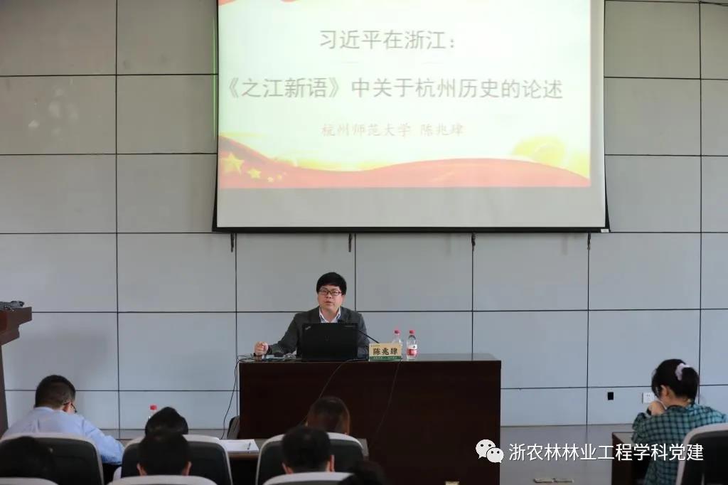 4月29日下午,工程学院党史学习教育专题报告在学9211举行。小说狂人 陈兆肆教授应邀作“习近平在浙江—《之江新语》中的杭州历史文化论述”报告。林业工程学科党支部全体教师党员参加了学习。
