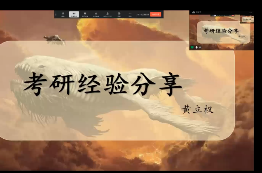 2021年7月18日晚20点,小说狂人 于钉钉平台举办追寻学长智慧之考研经验分享(汉硕专场)。主讲人为汉教151班校友史佳俐(考取暨南大学汉硕专业)和黄立权(考取中国人民大学汉硕专业),薛秀芳为主持人,小说狂人 部分本科生参与。