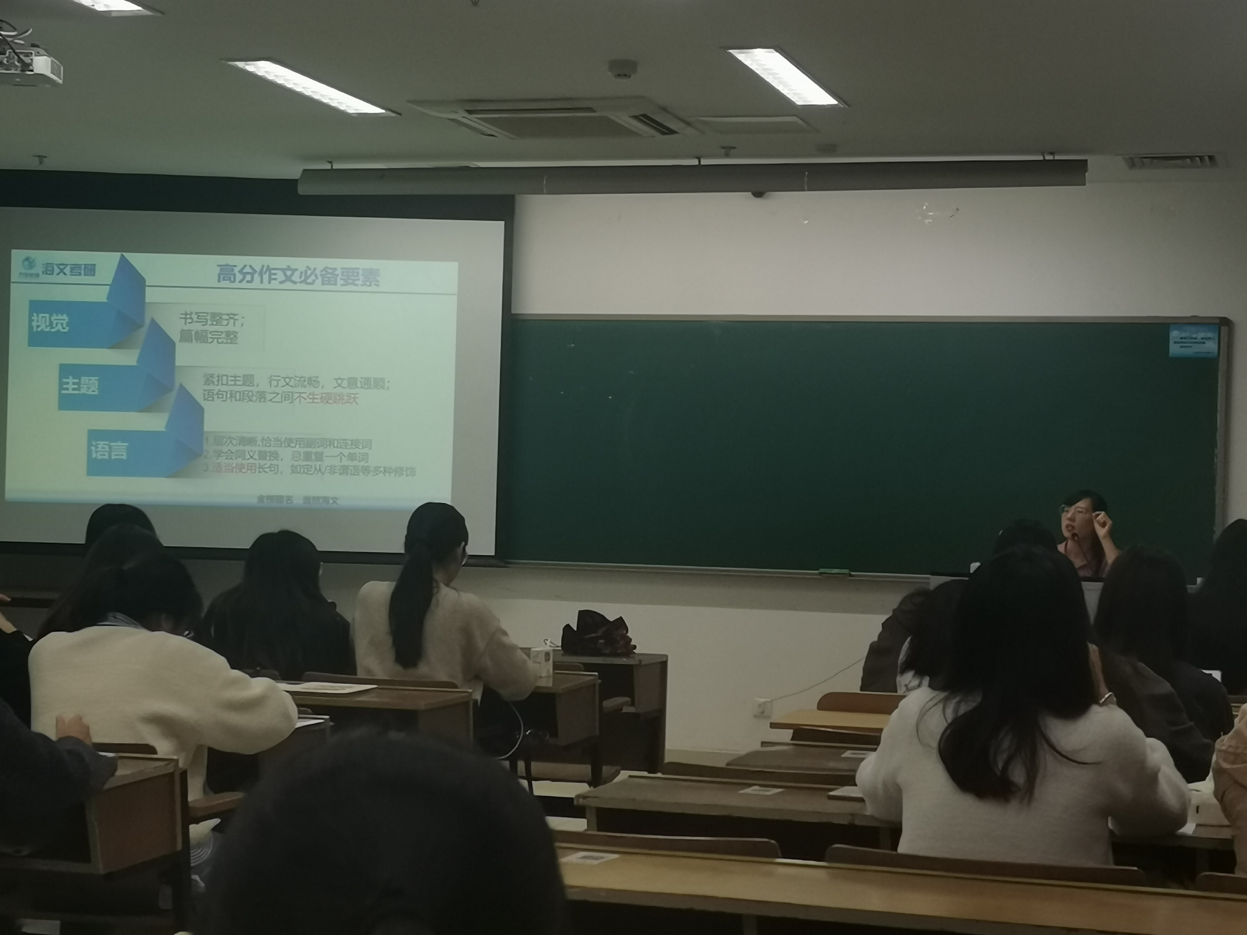 冯红霞老师指出,考研英语的复习不仅要对完型、阅读、翻译、写作、新题型等进行全面复习,同时还要有的放矢,明确重点。她以作文为例,深入浅出地讲解了考研英语作文需要从哪几个方面入手进行系统且有针对性的复习,以取得高分。