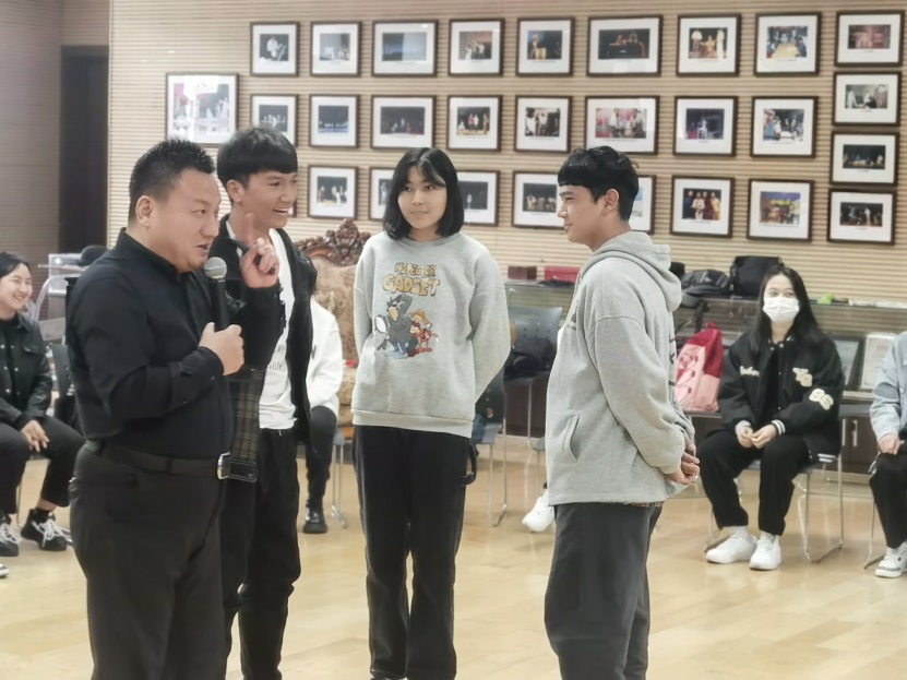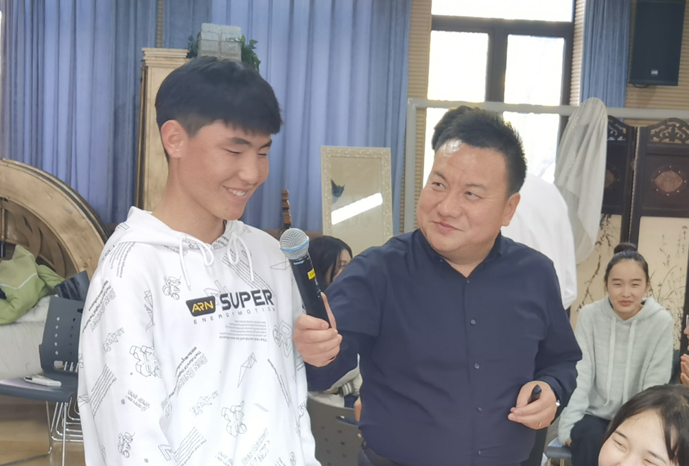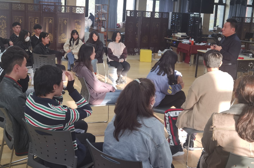 活动伊始,宋健男首先带大家进行“大风吹”的游戏互动热身,还选出同学一起跳了新疆舞,瞬间带动了现场气氛,让同学们放下了原有的拘束。
