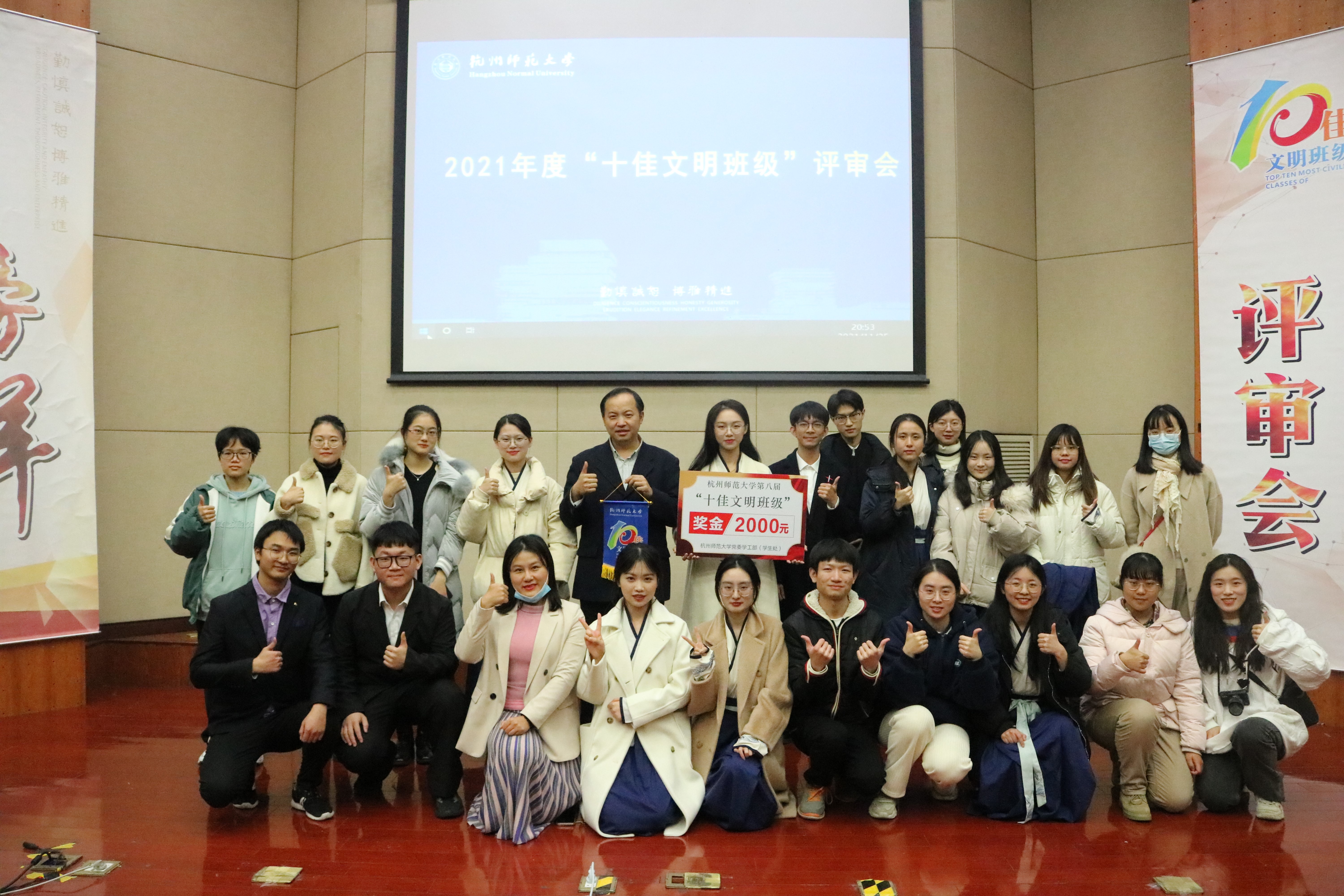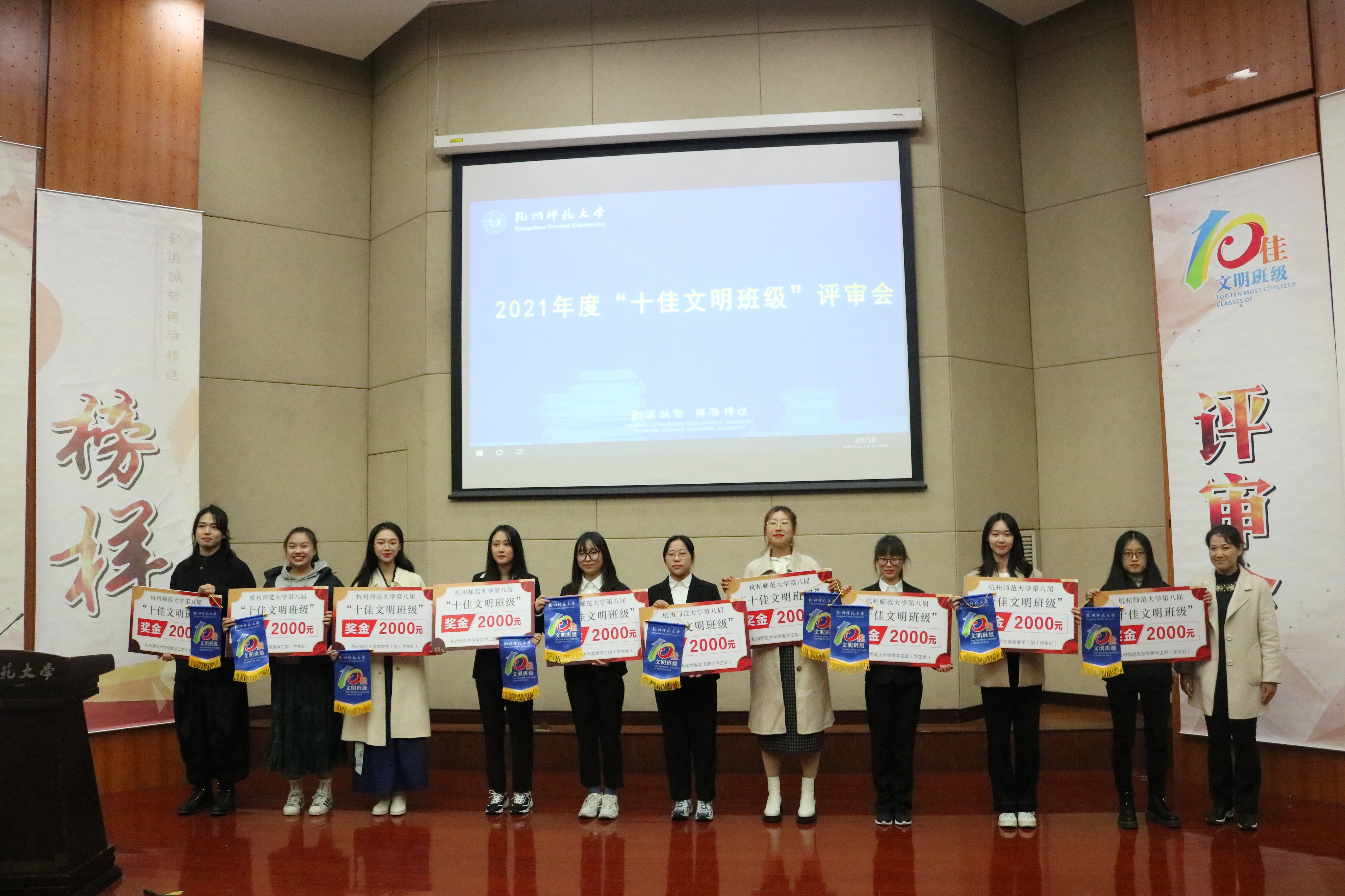 中文182班“十佳文明班级”评审会领奖环节