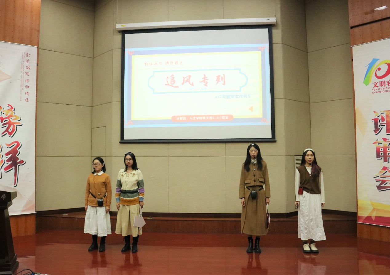 博文苑3-417寝室(成员:林佳子、王晓津、胡颖华和王婷婷)来自中文191班。接下来,就让我们一起乘上博文苑3-417寝室的这趟追风列车,共同游览沿途风景。