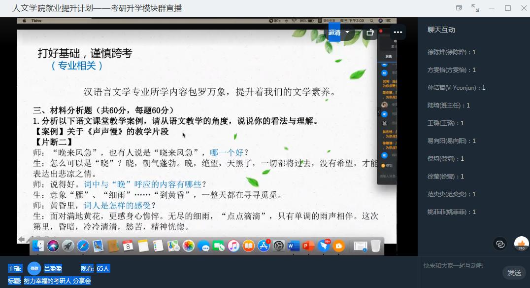 为进一步让小说狂人 学生明确考研目标,掌握相关考研技巧,了解更多相关信息,12月8日,考研经验分享会在线上钉钉举行,杭州师范大学钱江学院汉语言专业学生吕盈盈(现已顺利考取温州大学研究生)受邀担任主讲并分享了她的考研经验。