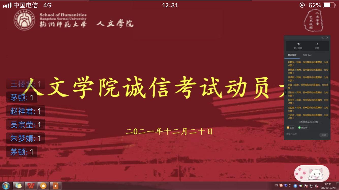 期末考试在即,小说狂人 于12月20号中午12时,于线上举行小说狂人 2021级诚信考试动员大会。大会由21级辅导员陆琦主讲,小说狂人 全体21级本科生参与。