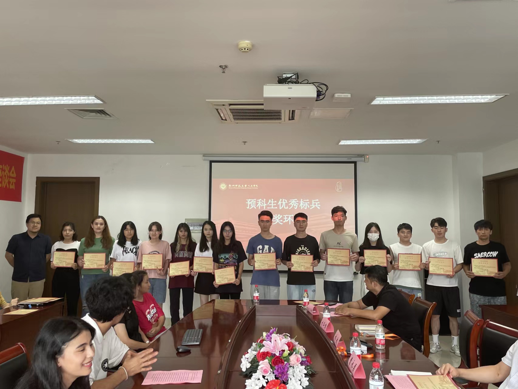 学生与教师代表发言过后,各位老师为预科生优秀标兵们颁奖并合影留念。