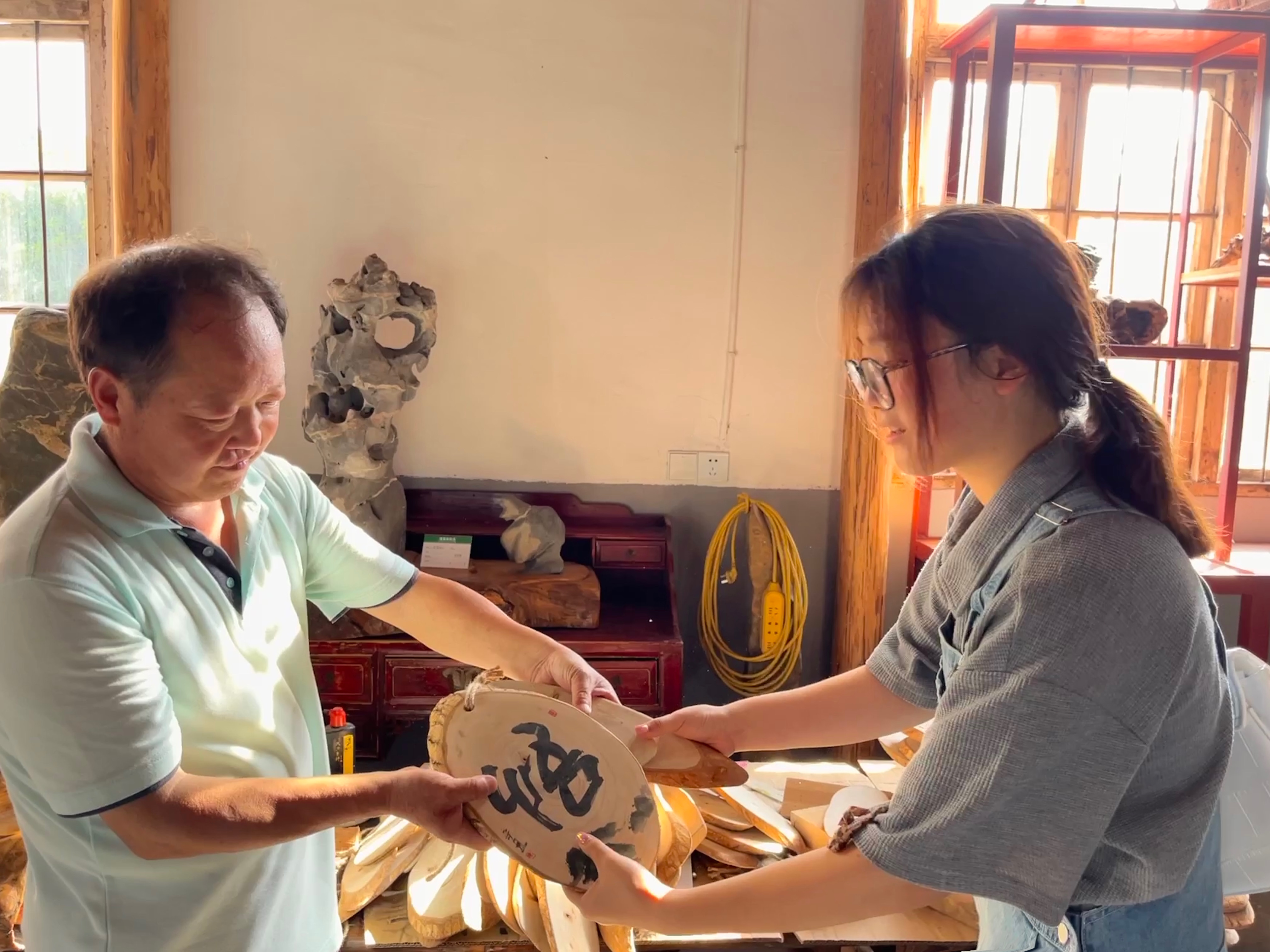 这座以“石雕、木雕、根雕”三雕为展示主体的民间手工艺品博物馆,借以书画为翼,对外充分展示了民间文化。陈列展品多为馆长汪茂平吃在山坳,住在河滩,采集到的天然杰作,也有在天然木石基础上加以精雕的工艺品,从中能够感受到了汪馆长对传统乡土文化的热爱以及传承传统文化的决心。同时小分队也对淳安劳动人民的智慧与巧思赞叹不已,其中收藏的老物件勾起许多人的乡村回忆,见证了世事的变迁。