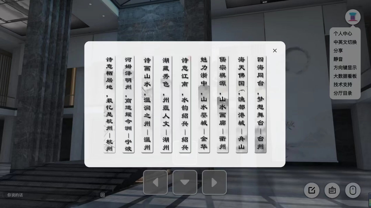 与传统博物馆不同的是,“浙江方言资源”数字博物馆更重视访问者的交互体验,内置若干个交互场景,使用者可随时进行图文互动,在各分展馆内展示自己母语方言的材料和家乡的风土人情。同时,我校师生以及其他有志于此的访客,均可申请使用语音实验室自由编辑高清音视频素材,并通过大型服务器(设置于智慧教室)上传、同步,实现博物馆资源的长期数字化与动态信息化。