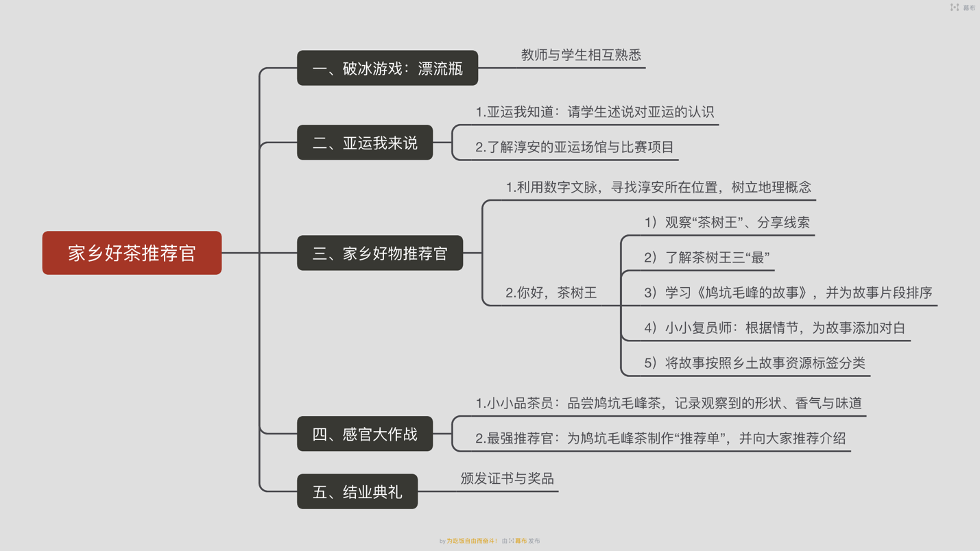 “三月嘉禾起,品茗有鸠坑”,为让更多的小朋友了解“鸠坑茶”、鸠坑特色,助力乡村振兴,学习鸠坑茶的历史以及背后的人文价值,推出乡土课程“家乡好茶推荐官”,探秘鸠坑毛峰茶背后的传说故事,利用数字乡土文脉地图和乡土数字资源数据库,依托杭州亚运会这一契机为鸠坑毛峰茶撰写推荐语,领略风土人情和文化魅力,培养真善美的品质,激发对传统文化的热爱。