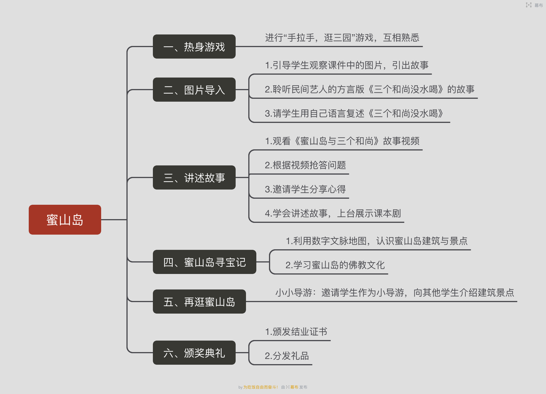 本课程依托《蜜山岛与三个和尚》乡土故事进行创新性改编,充分利用数字乡土文脉地图进行引导,使学生明确地理概念,又以游戏的形式跟学生进行互动,用课本剧的形式让学生进行角色扮演寓教于乐,从而让学生领略家乡的自然风光和风土人情,学习蜜山岛上人们勤劳、团结互助、知错能改的品质。
