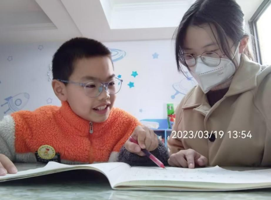 谈及报名志愿活动的原因,志愿者郑汝芸分享道:“我想丰富一下课余生活,也想多积攒一些实践经验,作为以后参与支教活动的一个入选条件。而且,我作为师范生,也想有更多的教学体验,想多了解当下学生的心理与感受,与他们的思想尽量不脱轨。” 对于小朋友上课时注意力不集中、偷懒说闲话等开小差行为,志愿者罗缘表示,因为知道她喜欢画画和弹琴,所以会和她商量好,如果提前做完作业,就留时间陪她画画或者教她弹琴以鼓励她认真完成任务;为提升小朋友写作能力,郑汝芸利用教辅研究方法,她说道:“小朋友写作需要追求真实,暂时无法完全接受编排好的套用句式,而观察到的生活细节也无法完全记住,只能通过引导他想象场景来帮助他丰富文章内容,看到他的进步会给他肯定和鼓励,我也会很有成就感,于是有了继续下去的动力。”罗缘同学分享道:“我想最珍贵的是终于体验到了教学生的感觉。虽然她是一年级,很多知识都是很简单的,但是看到她写完作业或者背完课文,我都会很有成就感!希望她长大以后能记得有过我这样一个小老师,这次志愿活动在某种意义上更坚定了我的教育理想。”