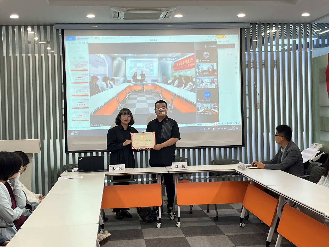 在活动正式开始前,为纪念汶川地震15周年,全体党员进行了鸣笛默哀。支部书记林伊纯介绍参加活动支部基本情况和特色活动后,举行了“信道”导师聘任仪式,仪式后,“信道导师”刘杨开展了专题微党课。刘杨老师指出两个“奇迹”之间的关联,即“世所罕见的经济快速发展奇迹”和“社会长期稳定奇迹”,正是维稳才有了收益的预期,国内外商人才肯投资,才带来了经济快速发展。回望过去,百年征程中我们党带领全国各族人民创造出了开天辟地的丰功伟绩;展望未来,在全面建设社会主义现代化国家的新征程中,我们党必将带领全国各族人民继续创造新的辉煌、开辟新的历史伟业。