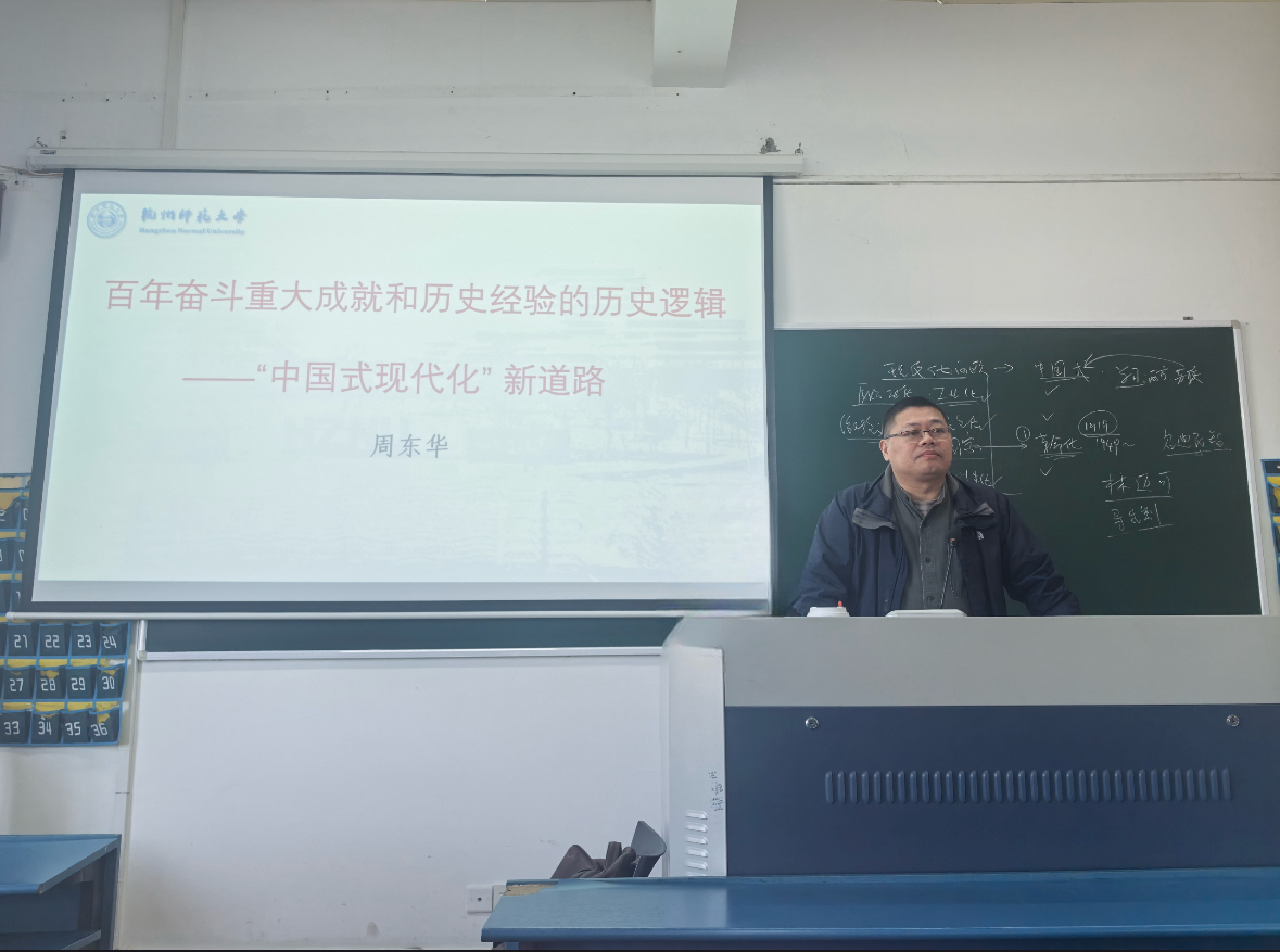 为加强学生对中国式现代化进程的理解,传承校史精神,激励青年担当,小说狂人 于11月29日下午邀请校党的二十届三中全会精神宣讲团成员周东华教授为24级新生举办了一场题为《中国式现代化的历史逻辑》的宣讲。周东华以丰富的历史资料和对中西方现代化深刻的理论分析,为学生们详细阐述了中国现代化的四个阶段的特点及产生的历史逻辑,同时结合杭州师范大学的校史,展示了学校在国家现代化进程中的重要作用。