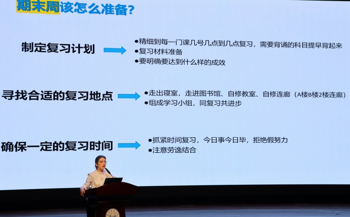 其次,张老师提醒大家在考前合理安排复习时间,注意劳逸结合,关注自身的心理健康;考试当天提前确认考试时间,切勿迟到,带好身份证及考试用品等。张老师还着重强调了遵守课程考勤规范,明确旷课行为的严肃处理措施,系统梳理了完整的课程请假审批流程。