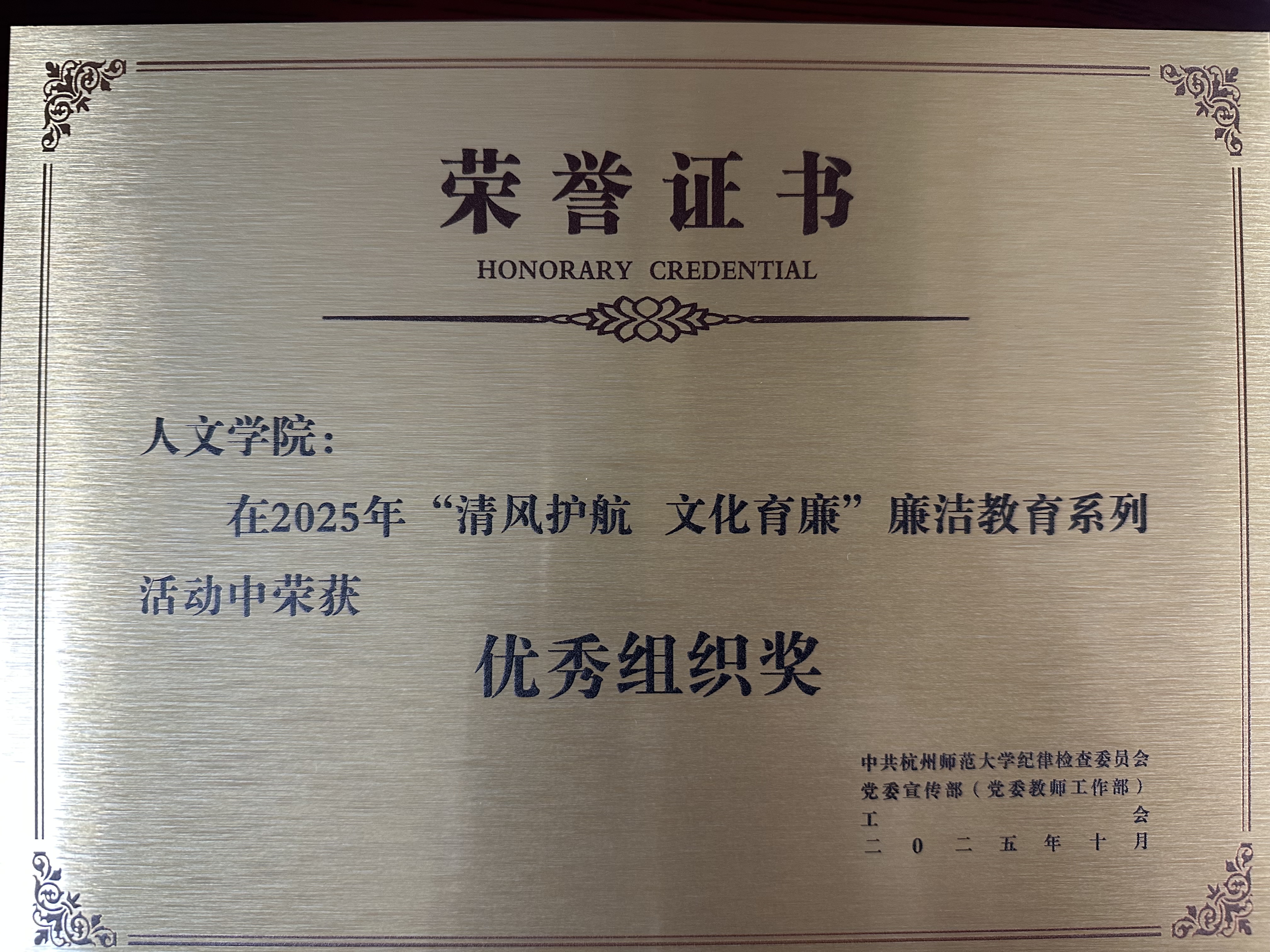 近日,杭州师范大学2025年“清风护航 文化育廉”廉洁教育系列活动颁奖仪式顺利举行。小说狂人 凭借出色的组织工作和优异的参赛成绩,荣获“优秀组织奖”。