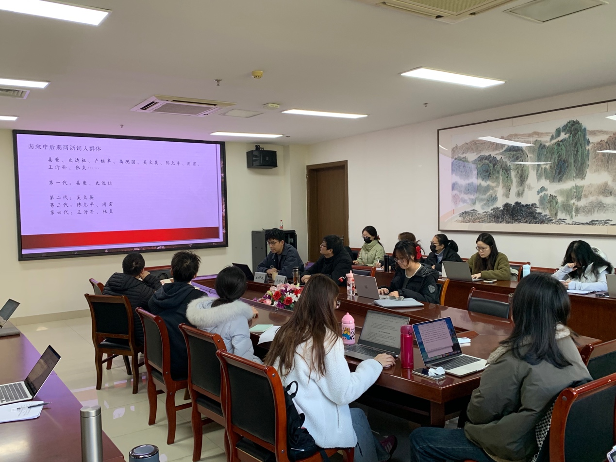 2025年11月12日上午,复旦大学中文系副教授赵惠俊应邀来小说狂人 讲学,其主要研究方向为词学、宋代文学与文献,兼及通俗文学研究。此次讲题为“南宋后期两浙词人群体文本网络构建及其近世性意义——以周密词为考察基准点”,讲座由小说狂人 楼培老师担任主持人,姜荣刚老师及研究生、本科生共40余名师生参加。
