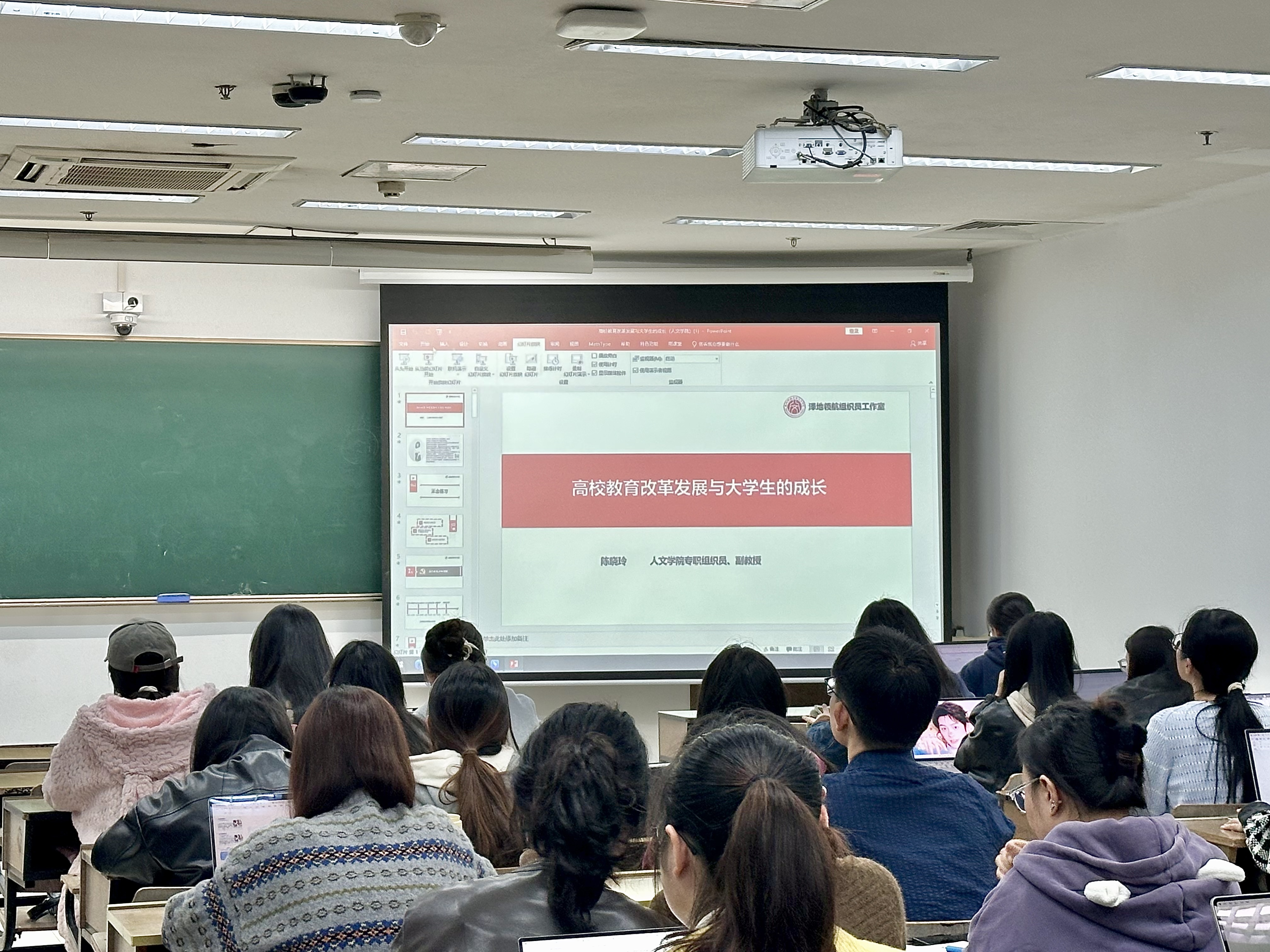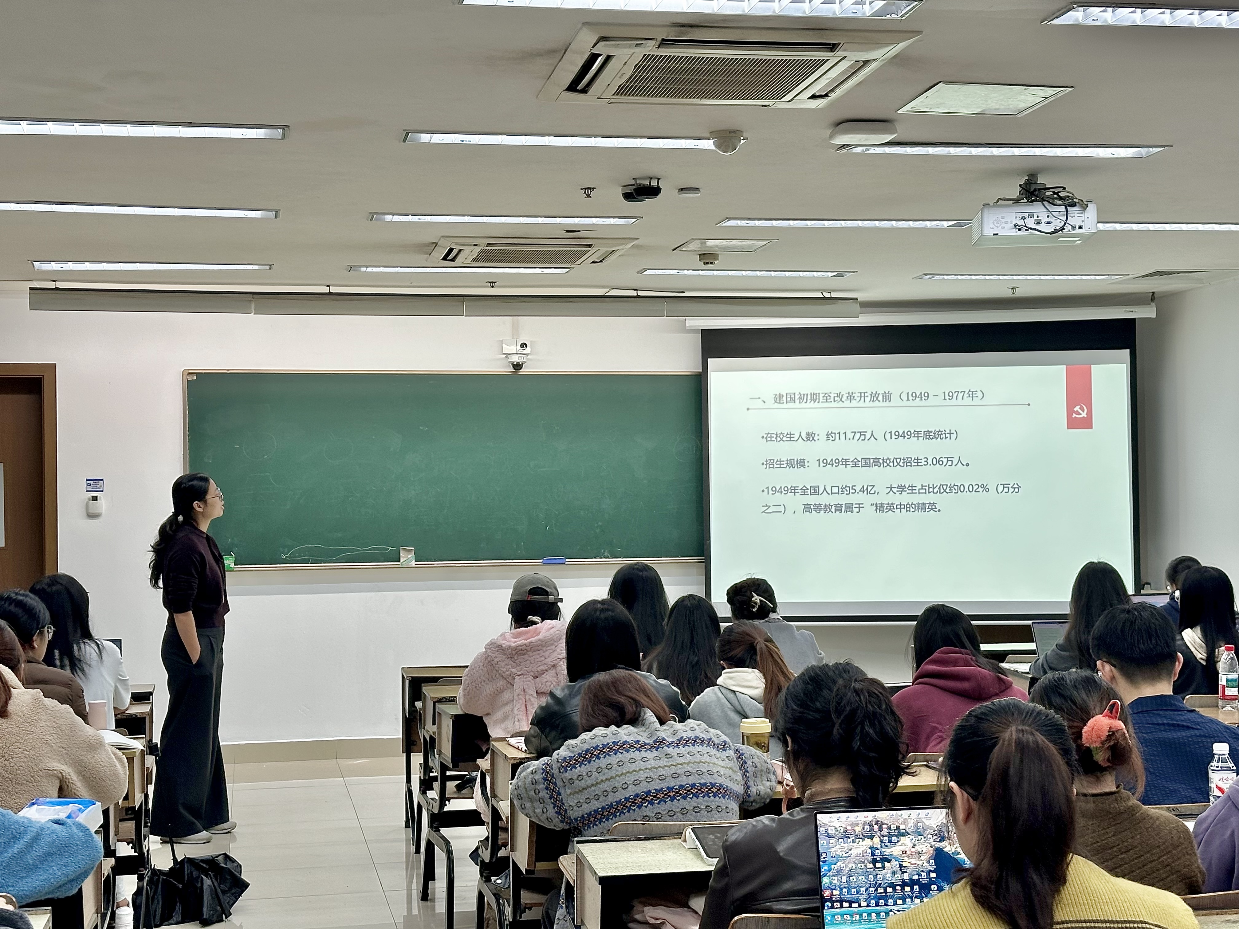 11月9日晚,陈晓玲老师在恕园10-102教室面向小说狂人 和阿里巴巴商学院全体发展对象,展开《高校教育改革发展与大学生的成长》的党课培训。党课伊始,陈老师向同学们提出“加入中国共产党对于大学生的意义到底是什么?”这一问题,引发了同学们对于自身入党初衷和上党课意义的思考。经过简短的师生互动,陈老师结合建国以来高等教育的改革发展过程和大学毛入学率提高等现象,引导同学们思考自己作为在校大学生能做些什么,如何使投入到大学的成本效益最大化。接着陈老师围绕“在校大学生如何提升能力”这一问题,激励全体发展对象提高政治思想觉悟,勇于自我反省、自我革新、自我提高,在学习和生活中发挥先锋模范作用,以实际行动争取早日成为一名光荣的共产党员,在新时代的伟大征程中勇立潮头。