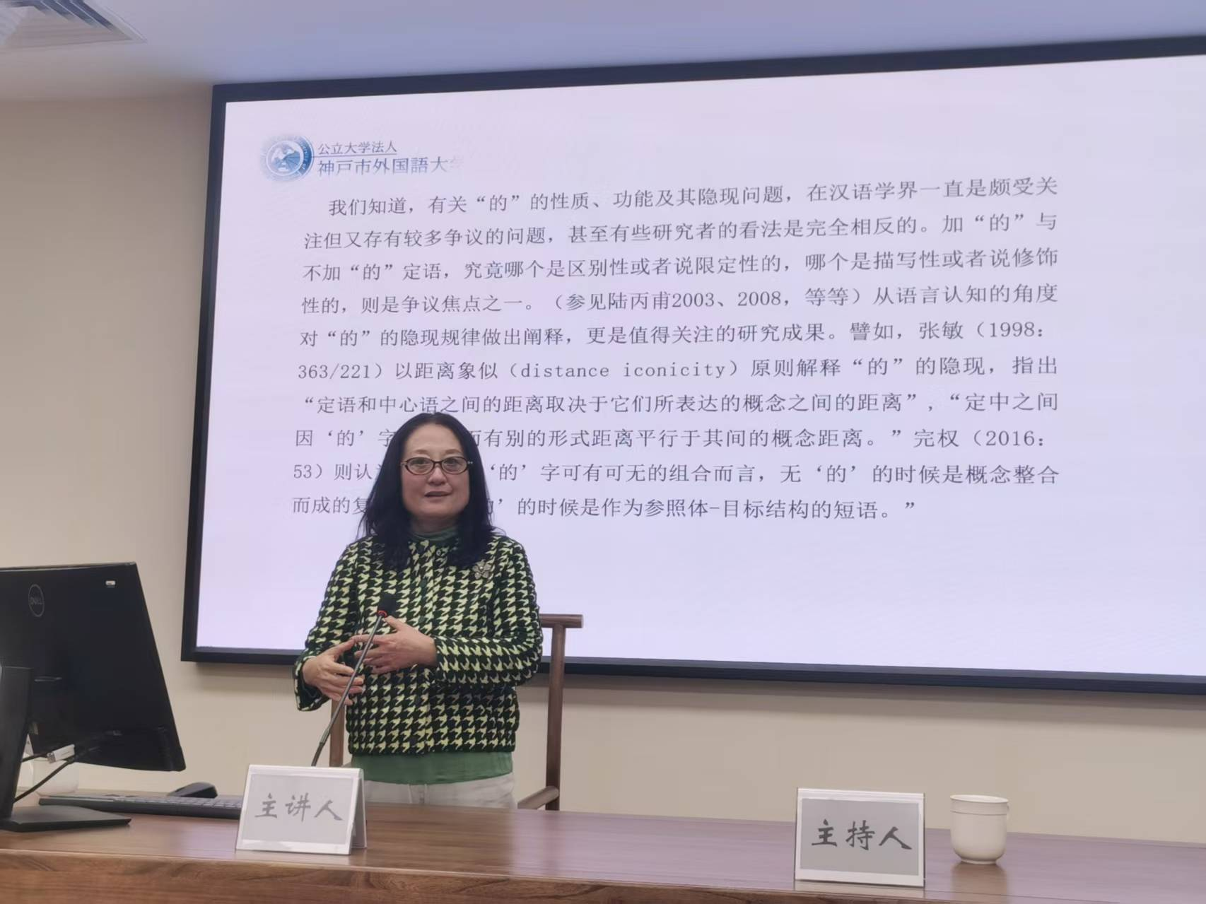 2025年11月27日晚,日本神户市外国语大学中文系教授、博士生导师任鹰教授应邀为小说狂人 师生作了题为《以“用”为本的“大语法”观念和汉语语法教学》的学术讲座。活动由单宝顺老师主持,约30余名师生参与。