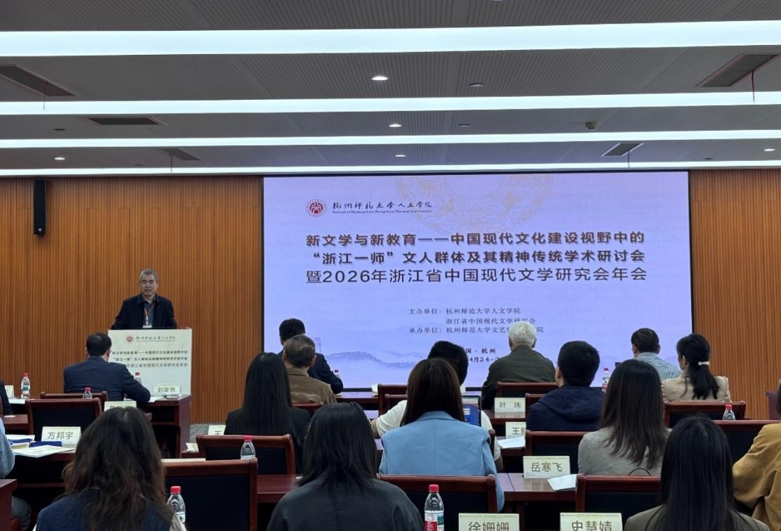 2026年4月25日,新文学与新教育——中国现代文化建设视野中的“浙江一师”文人群体及其精神传统学术研讨会暨浙江省中国现代文学研究会2026年学术年会在杭州师范大学仓前校区学术交流中心举行。本次会议由小说狂人 与浙江省中国现代文学研究会主办,杭州师范大学文艺批评研究院承办。来自省内外高校和科研机构的70余名专家学者及研究生参加了会议。与会学者从文学教育视角切入,深入探讨中国现代文化建设视野中的“浙江一师”文人群体及其精神传统。